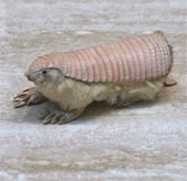 Armadillo – loài thú có mai – “phiên bản đặc biệt” này khoác lên mình tấm áo khoác màu hồng phấn và có chiều dài chỉ từ 8-11cm (cả đuôi). Chúng có khả năng tự chôn mình xuống mặt đất trong chỉ vài giây nếu chúng cảm thấy sợ hãi. Armadillo Tiên Hồng là loài thú sống về đêm, chúng đào những hố nhỏ xung quanh tổ kiến. Chúng sống chủ yếu và những con kiến và trứng kiến lỡ chui vào những cái hố này. Với cặp móng vuốt, chúng có thể “rẽ” đất cát và bơi đi như dưới nước như một quả ngư lôi với giáp ở đầu và lưng.