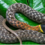 Chúng có sọc đen hẹp đặc biệt chạy từ mắt đến mũi và kéo dài xuống giữa trán, mắt màu vàng nâu với đồng tử hình tròn thay vì khe. Cá thể non có những đốm đỏ ở mặt dưới mà cá thể trưởng thành không có.