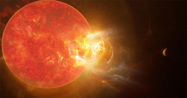 Mô phỏng chớp sáng phun lên từ ngôi sao Proxima Centauri.